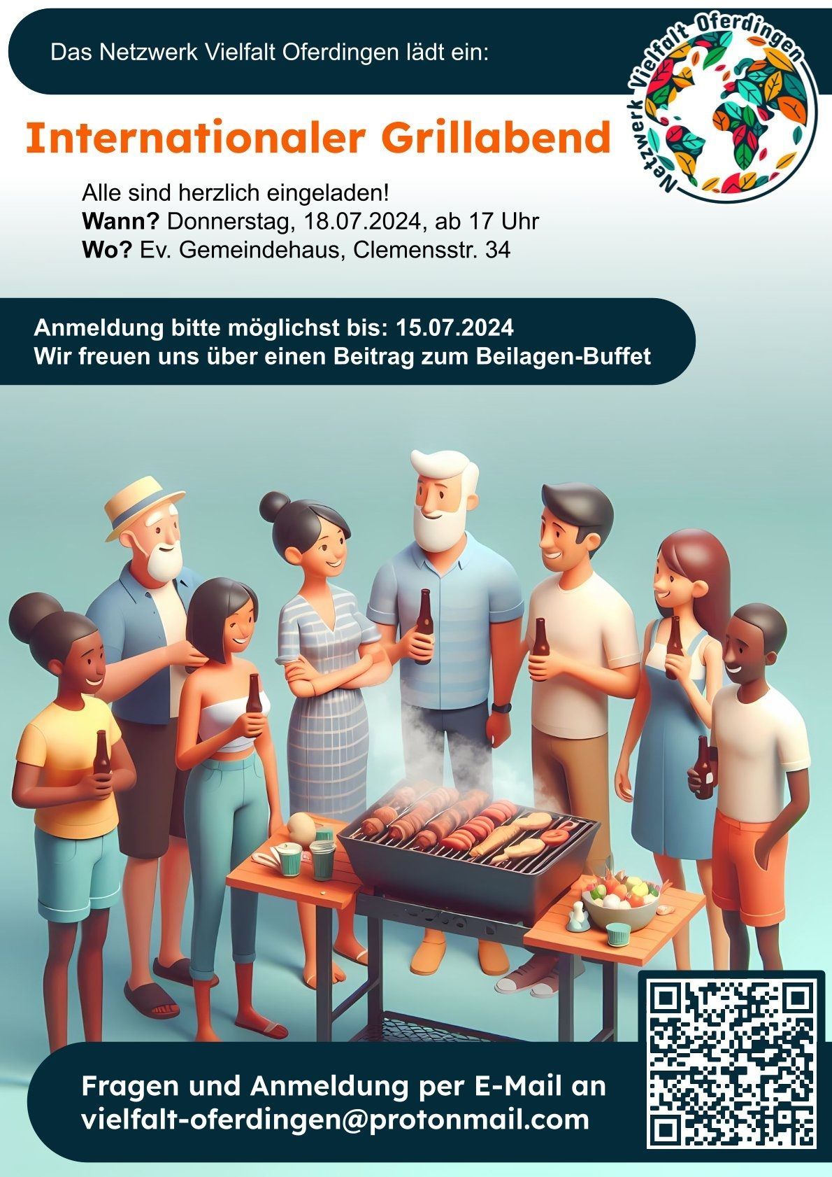 The Vielfalt Oferdingen network provided barbecue food and drinks and the guests contributed to the side dish buffet.